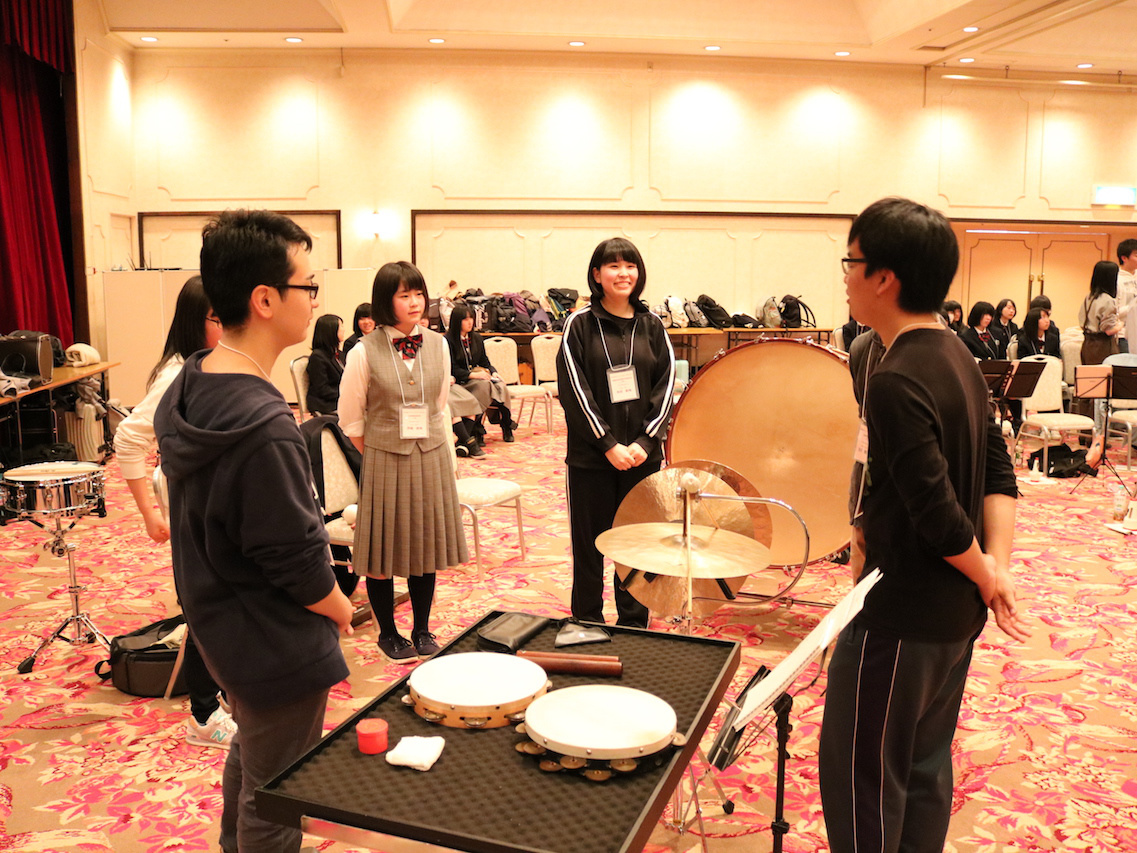 開会式に続き、このキャンプ最初の講座となる合奏講座パートⅠでは、A群・B群の2つのバンドにわかれ、中村先生、井田先生による各楽器の基本奏法とチューニング方法、ユニゾン・ハーモニー・スケールを活用した基礎合奏の実践方法などの指導が行われました。また、指導の中には演奏技術だけではなく、アンサンブルするために必要なコミュニケーションの重要性についてもお話される場面がありました。とくに今回はほとんどが初対面でのアンサンブルでした。その中で始めはバラバラだった音も、徐々にまとまりが出てくるなど、演奏技術だけでなく、コミュニケーションを大切にすることで音はより良く変わっていくことなども実感できたのではないでしょうか。