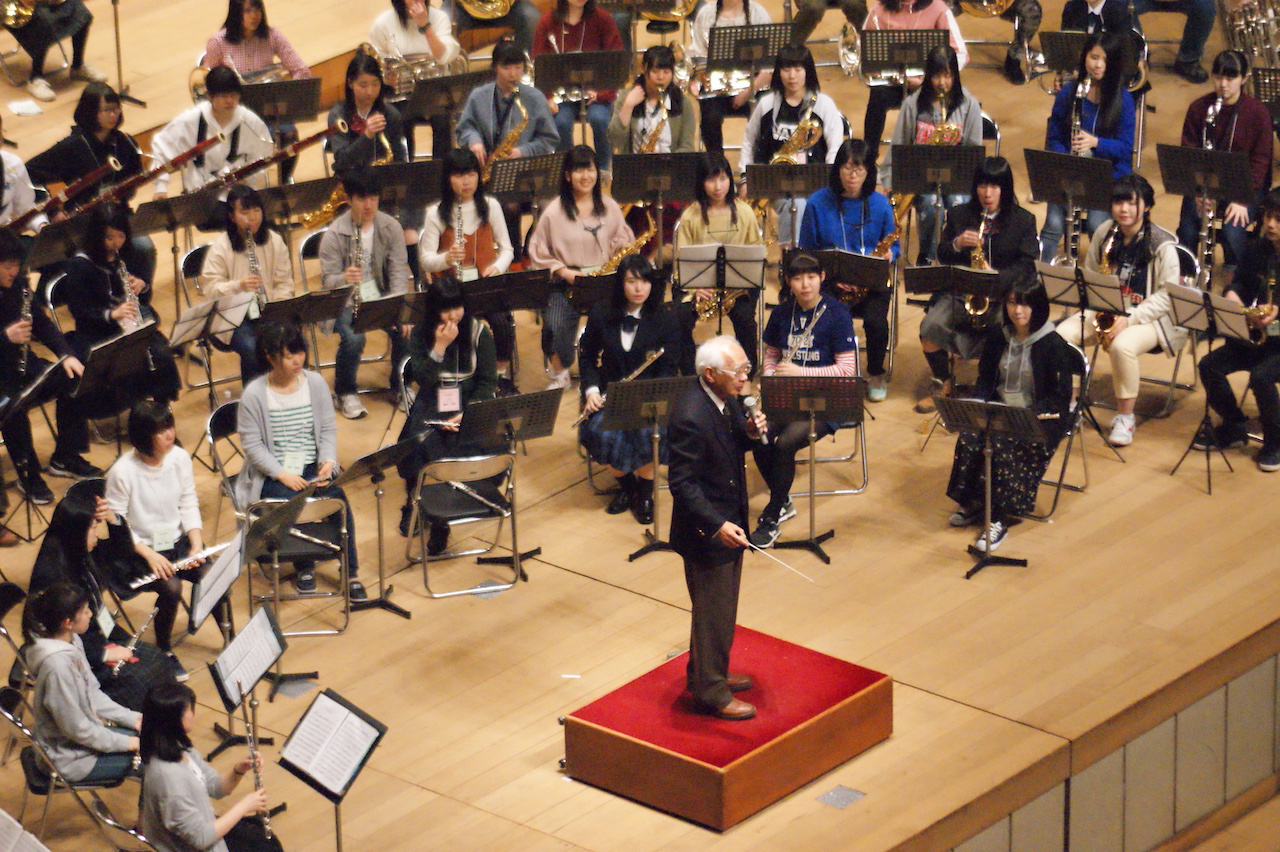 午後からは、会場をニトリ文化ホールに移し、合奏講座パートⅣ(合同バンド)。主として保科先生にご指導いただきました。前夜にも増して、より細かく、より深く、そして保科先生の持つ、音楽の流儀までを余すところなくご教授いただきました。