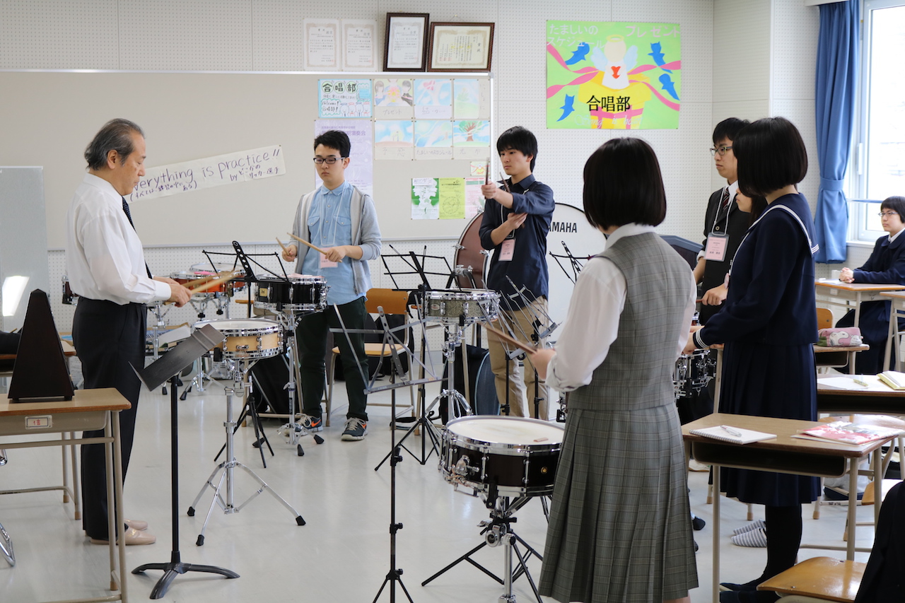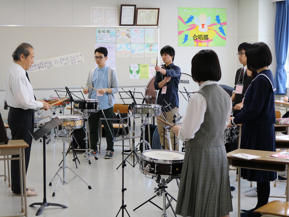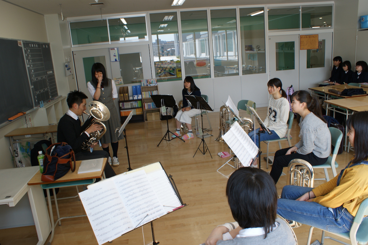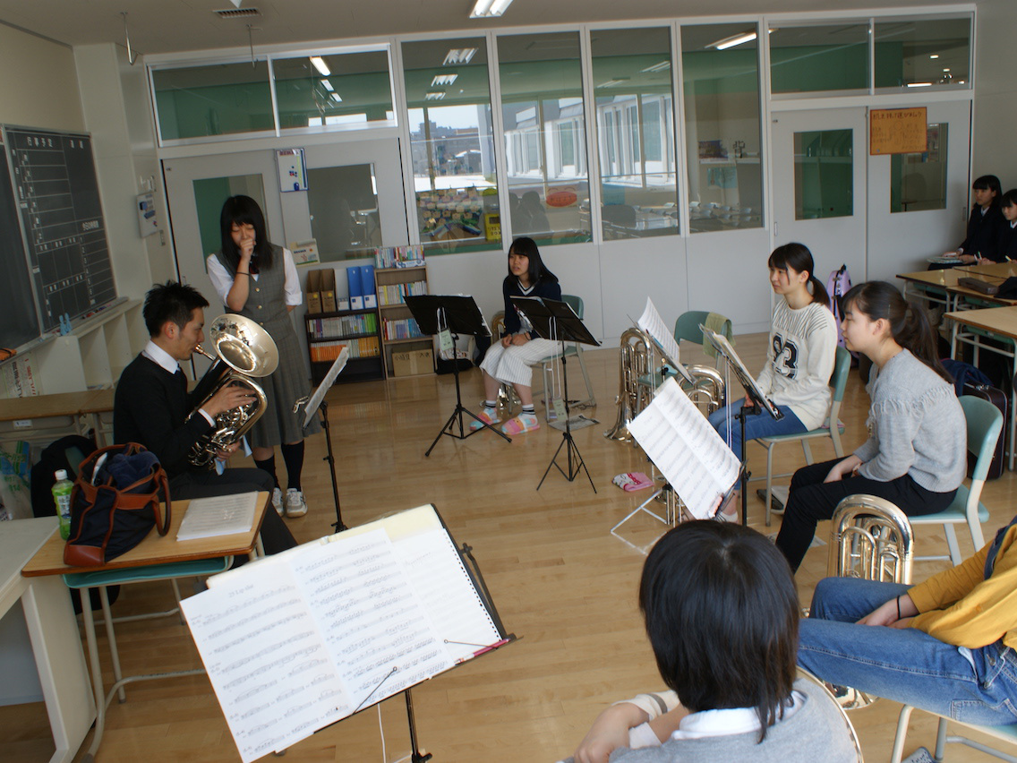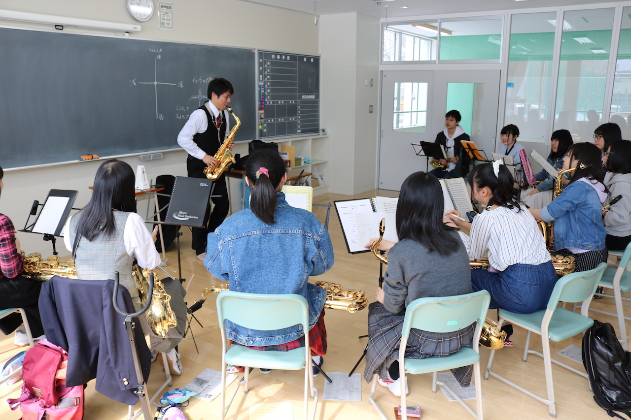 最終日となる3日目は、会場を札幌市立啓明中学校に移し、楽器別の実技講習会を行いました。この講座の講師には札幌交響楽団員をはじめ、前日に素晴らしい演奏を披露してくださった、サクソフォーン奏者の國末貞仁氏、ユーフォニアム奏者の大山智氏、打楽器は昭和音楽大学教授の石内聡明氏など、豪華な講師陣で実施することができました。専門家から指導を受ける機会が少ない受講生にとっては、最終日の疲れも見せず生き生きと受講しておりました。