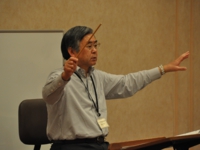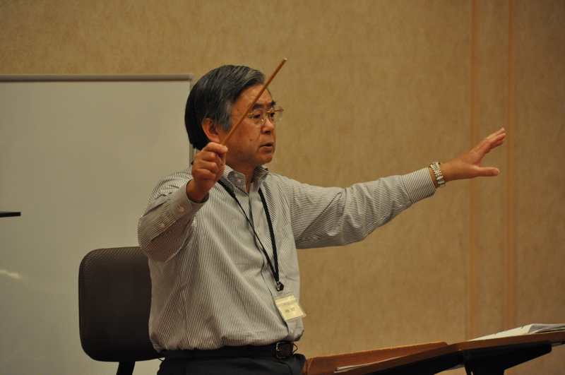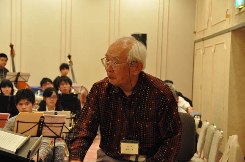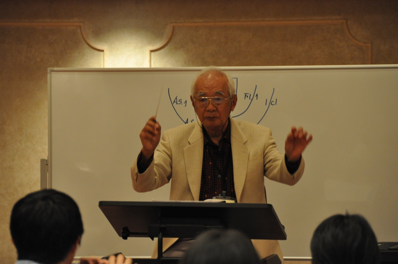 そして、この日の夜は、いよいよ保科先生の登場。受講生全員による合同バンドを対象にした、合奏基礎講座・楽曲講習パートⅡ。題材に選んだ今年度吹奏楽コンクール課題曲Ⅱと、R・ワーグナー作曲(保科洋編曲)「エルザの大聖堂への行列」を独特な楽曲分析と見事なバトンテクニックで受講生を導き、知らず知らずに引き上げられていく自分に受講生は驚きを隠せない面持ちでおりました。