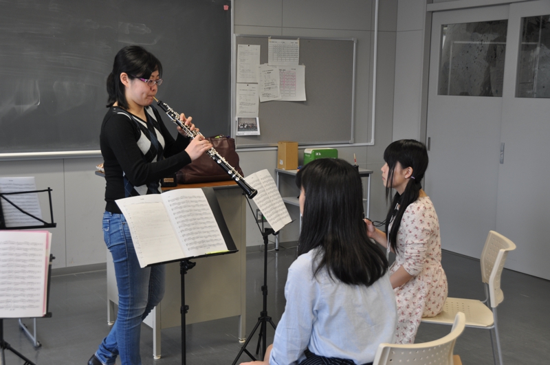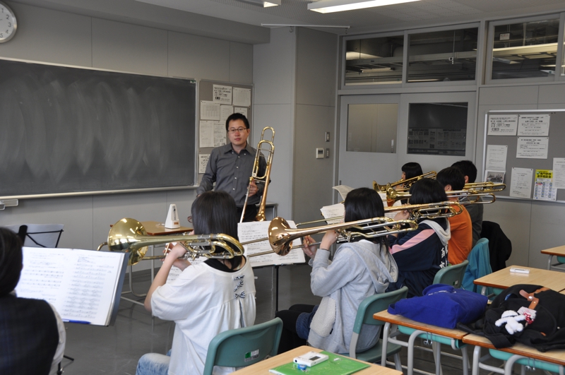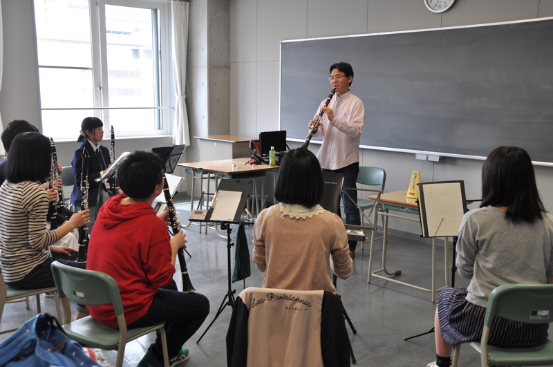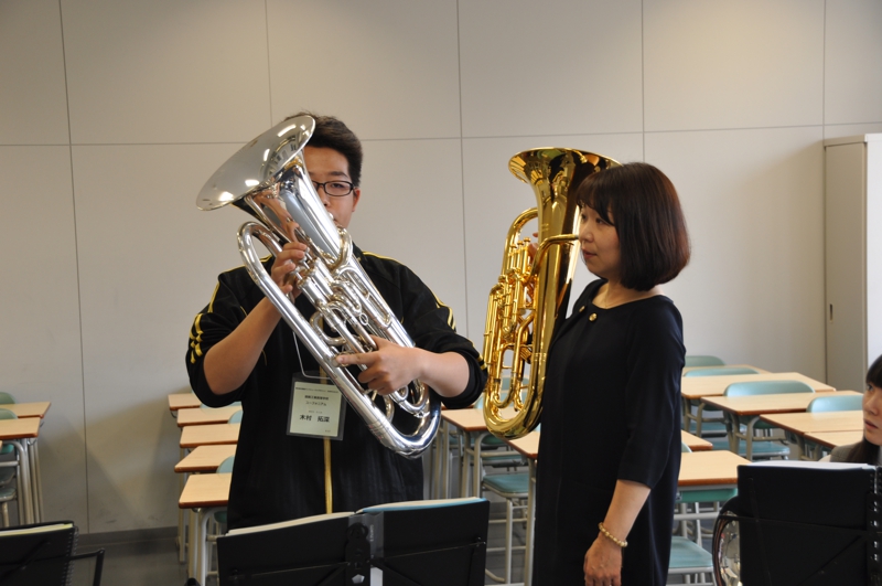 最終日となる3日目は、会場を隣接する大通高校に移し、楽器別実技講習を行いました。この講座には講師に札幌交響楽団員をはじめ、東京佼成WOの田中靖人氏(Sax)やシエナWOの庄司恵子氏(Euph)等、豪華な講師陣で実施することができました。専門家から指導を受ける機会が少ない地方からの受講生にとっては、最終日の疲れも見せず生き生きと受講しておりました。