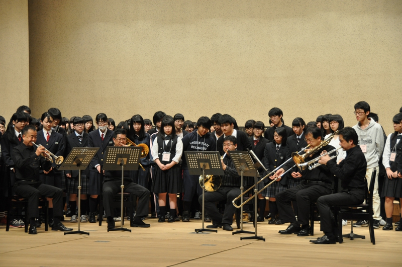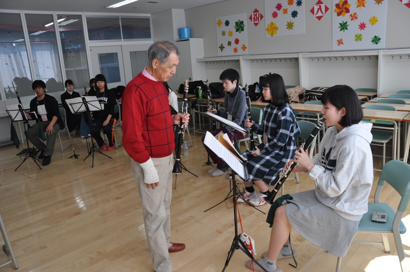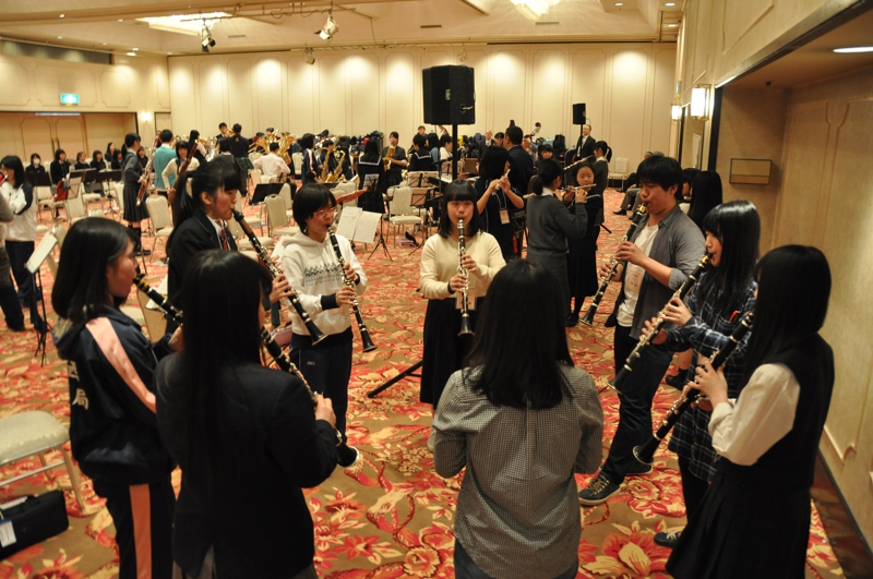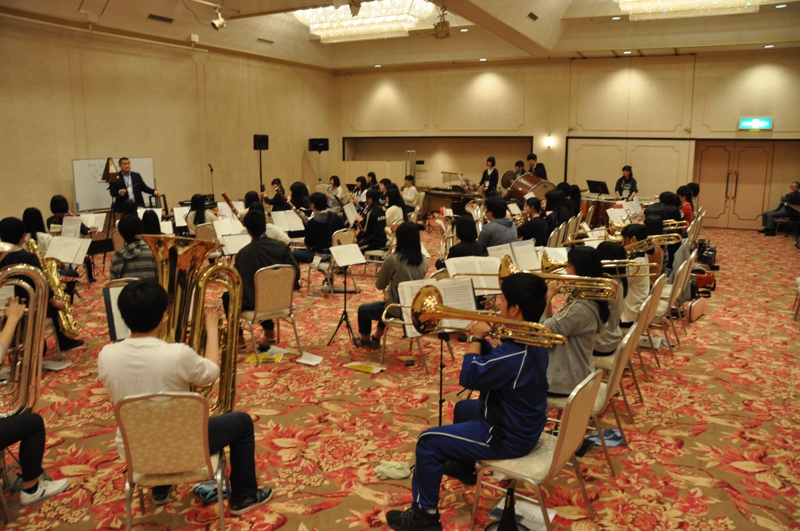 4回目となった今回は、前回に引き続き、合奏指導のメインディレクターに保科洋氏(作曲家)、中村俊哉氏(バンドディレクター)、そして当連盟理事長の井田重芳氏も担当しました。2日目の夜に開催されたスペシャルコンサートでは、クラリネット奏者の中川知美氏(フリー)、サクソフォーン奏者の波多江史朗氏(東京音楽大学)の独奏(いずれもピアノ伴奏は中谷友美氏)、そして札響金管五重奏団(tp福田善亮氏、tp佐藤誠氏、hr岩佐朋彦氏、tb田中徹氏、bs.tb野口隆信氏)の皆さんに演奏をしていただきました。また、3日目は、札幌交響楽団他のプロ奏者による、各楽器別の実技講習会を実施いたしました。