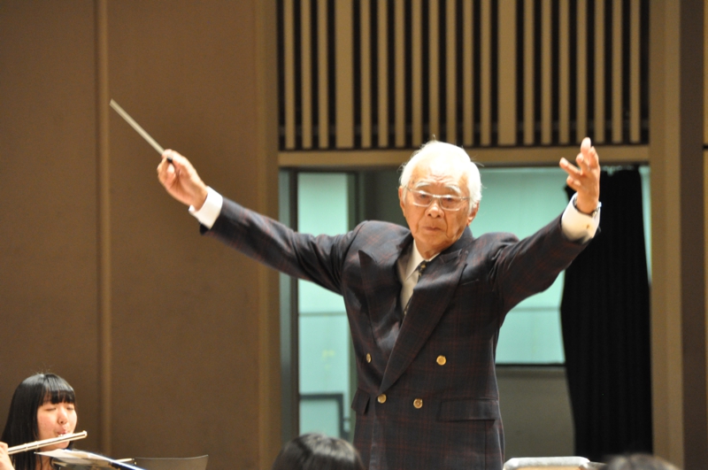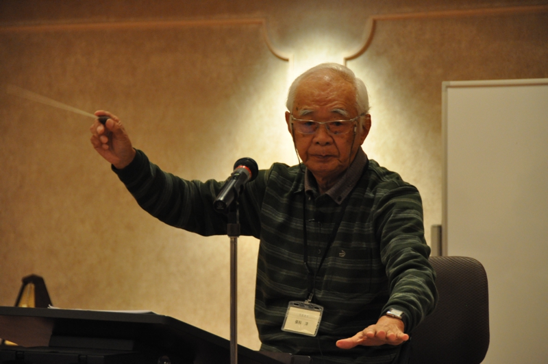 そして、この日の夜は、保科先生の指導の下、受講生全員による合同バンドを対象にした合奏基礎講座・楽曲講習パートⅡ。題材には今年度の吹奏楽コンクール課題曲Ⅳと、R・ワーグナー作曲(保科洋編曲)「エルザの大聖堂への行列」が選ばれました。課題曲では独特な楽曲分析と見事なバトンテクニックで受講生を導き、知らず知らずに引き上げられていく自分たちに、受講生は驚きを隠せない様子でした。また、「エルザ」は前回と同じ選曲でしたが、前回とは違ったアプローチから指導されていて、こちらも受講生にとっては忘れられない貴重な講座となりました。