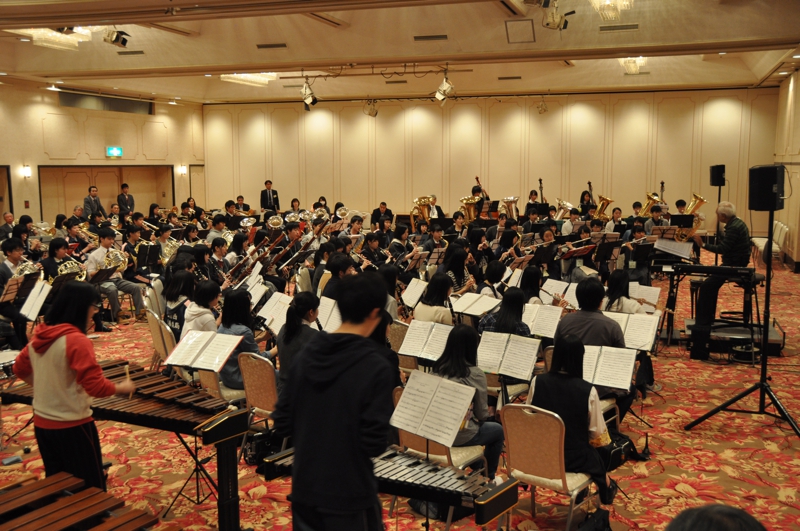午後からは、会場をニトリ文化ホールに移し、合奏基礎講座・楽曲講習パートⅣ(合同バンド)。主として保科先生にご指導いただきました。前夜にも増して、より細かく、より深く、そして保科先生の持つ、音楽の流儀までを余すところなくご教授いただきました。