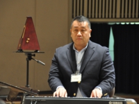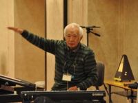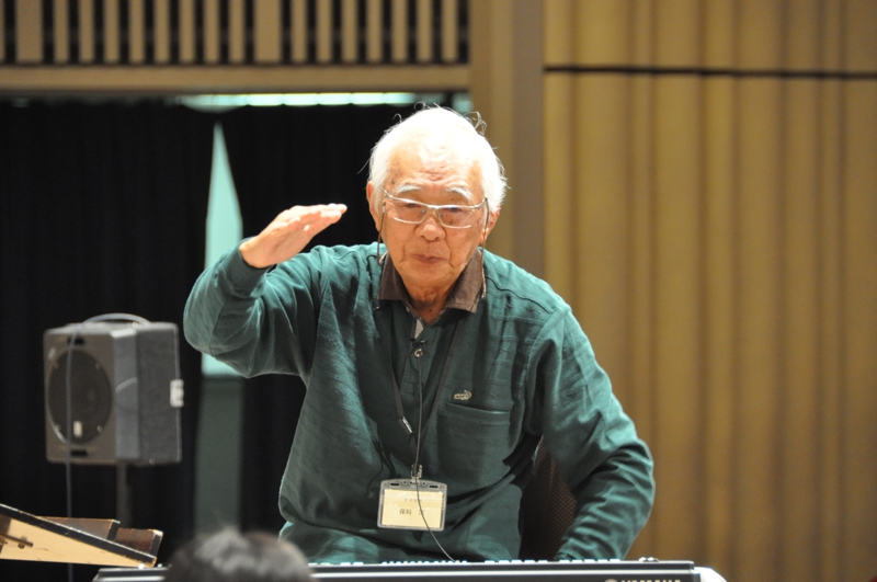 開会式に続き、このキャンプ最初の講座となる合奏基礎講座・楽曲講習パートⅠでは、A群・B群の2つのバンドにわかれ、中村先生、井田先生による各楽器の基本奏法とチューニング方法、ユニゾン・ハーモニー・スケールを活用した基礎合奏の実践方法などを含めた合理的にシステム化された合奏法に、受講生は真剣な眼差しで受講しているのがとても印象的でした。
