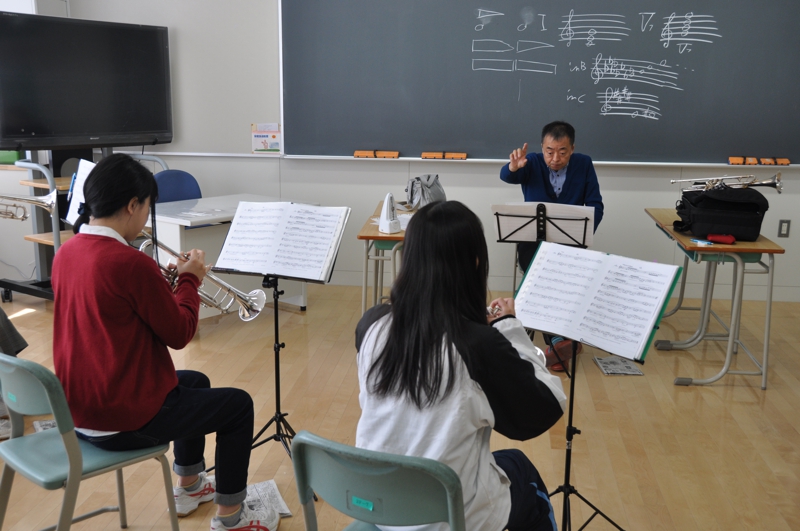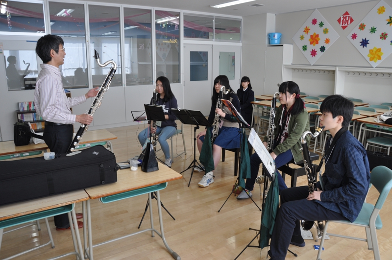 最終日となる3日目は、会場を札幌市立啓明中学校に移し、楽器別の実技講習会を行いました。この講座の講師には札幌交響楽団員をはじめ、前日に素晴らしい演奏を披露してくださった、東京音楽大学講師として、またカルテット・スピリタスのメンバーであるサクソフォーン奏者の波多江史朗氏やシエナWOのユーフォニアム奏者の庄司恵子氏など、豪華な講師陣で実施することができました。専門家から指導を受ける機会が少ない地方からの受講生にとっては、最終日の疲れも見せず生き生きと受講しておりました。