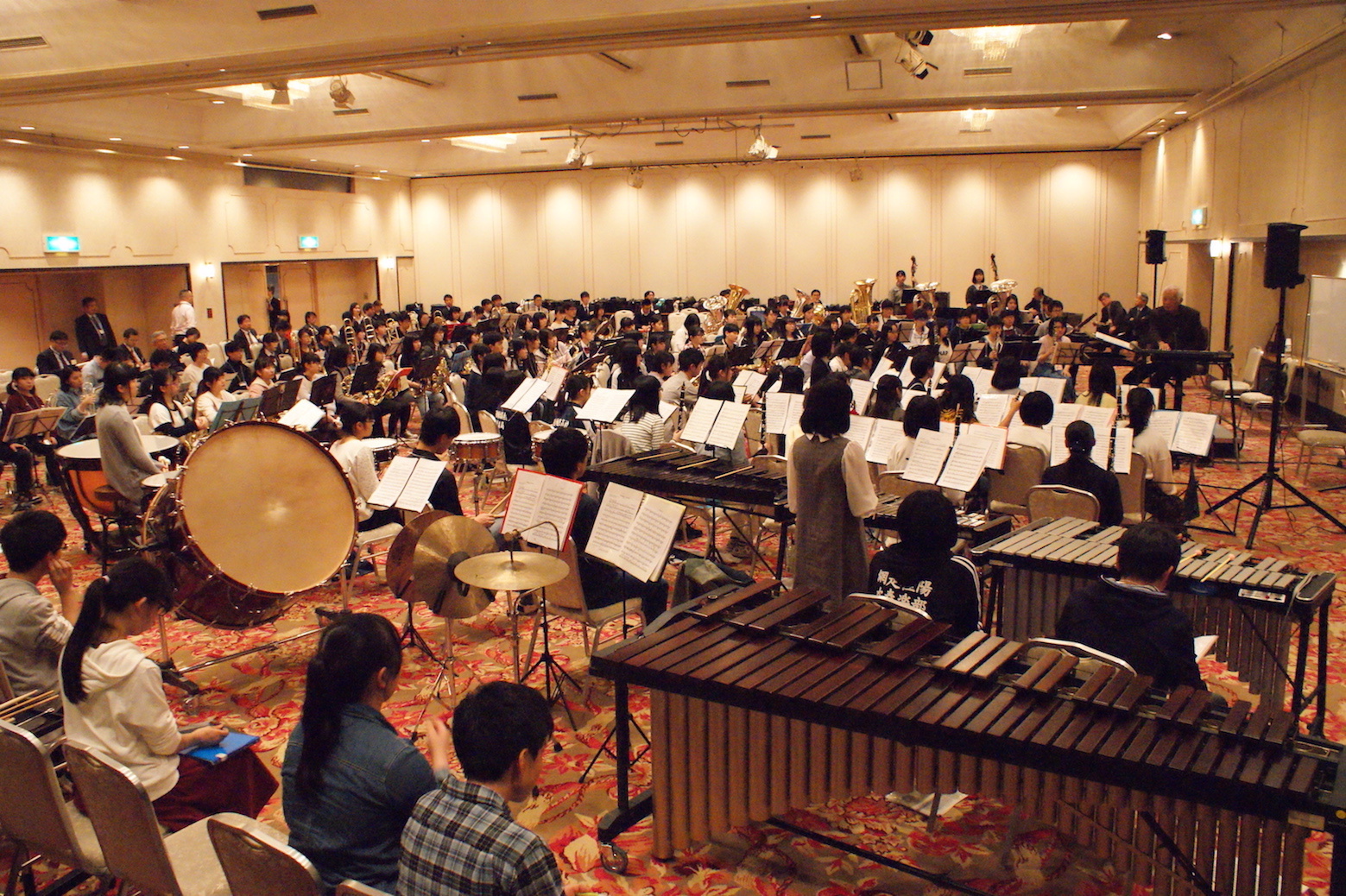 3月26日(月)~28日(水)の3日間にわたり、ホテルさっぽろ芸文館、札幌市立啓明中学校(いずれも札幌市)を会場に『第6回北海道バンド・ミュージック・キャンプ兼吹奏楽指導者研修会』が開催されました。毎年この誌面でもご紹介させていただいておりますが、このキャンプは、当連盟理事長である井田重芳氏(東海大学付属札幌高校)が高校時代に体験し、その後、自身の将来に影響を及ぼしたとされる全日本サマー・ミュージック・キャンプ(於・群馬県榛名湖)に端を発し、吹奏楽・音楽を通した「人づくり」をめざし、次世代の音楽文化を担うことができる青少年のリーダー育成を目的として、北海道吹奏楽連盟に加盟する高校生を対象にして行われています。また、今回は例年12月ごろに道内の吹奏楽指導者を対象として行われていた「吹奏楽指導者研修会」と合併しての開催となりました。研修会については、高校生たちの講義内容を自由に見学していただくというスタイルで行われました。