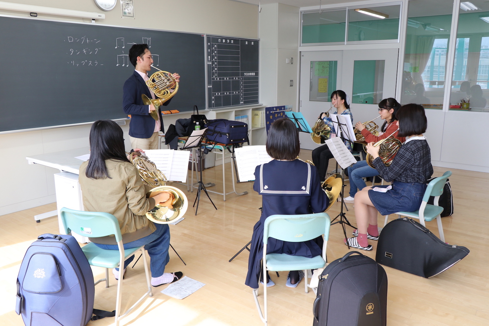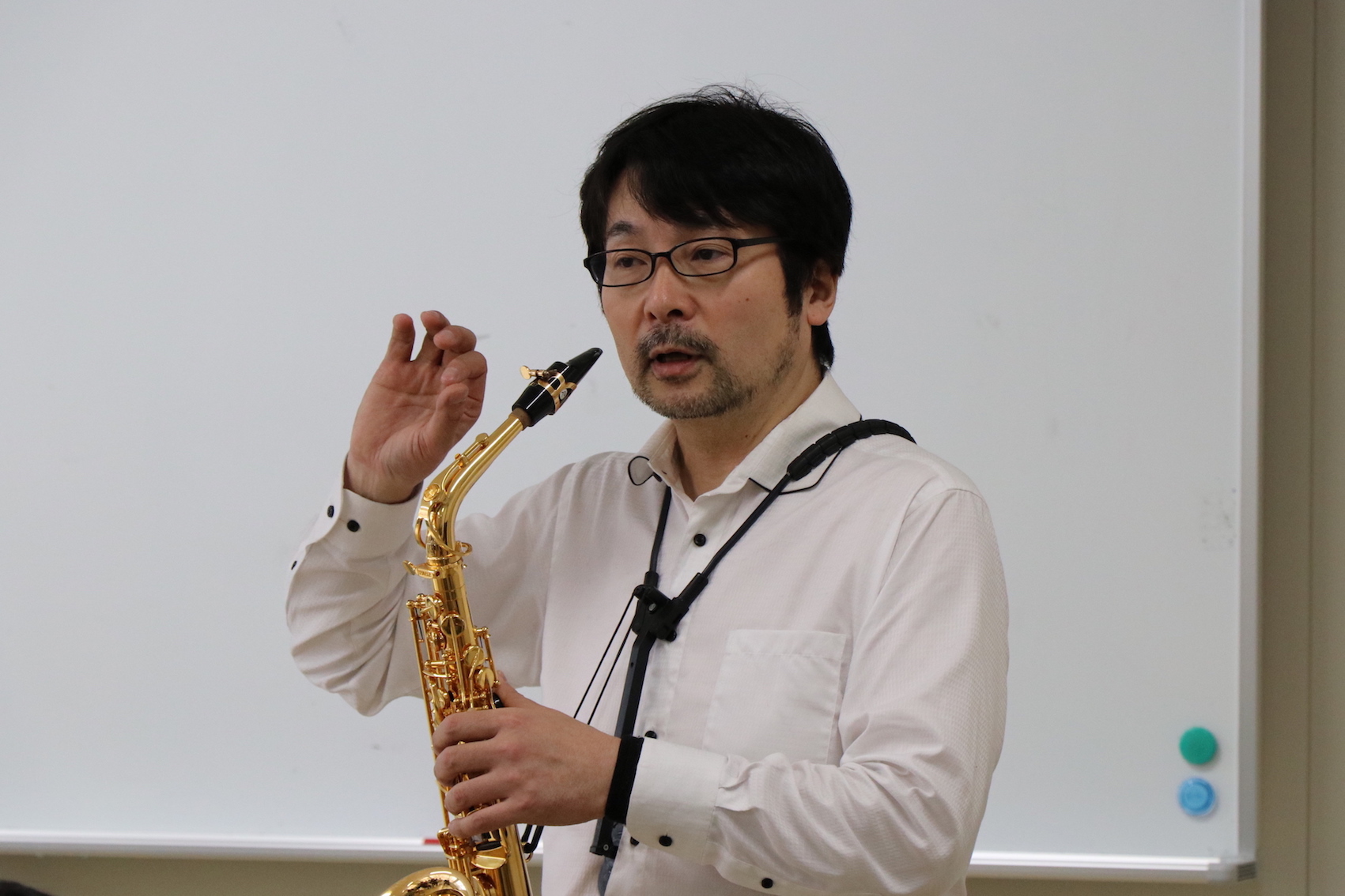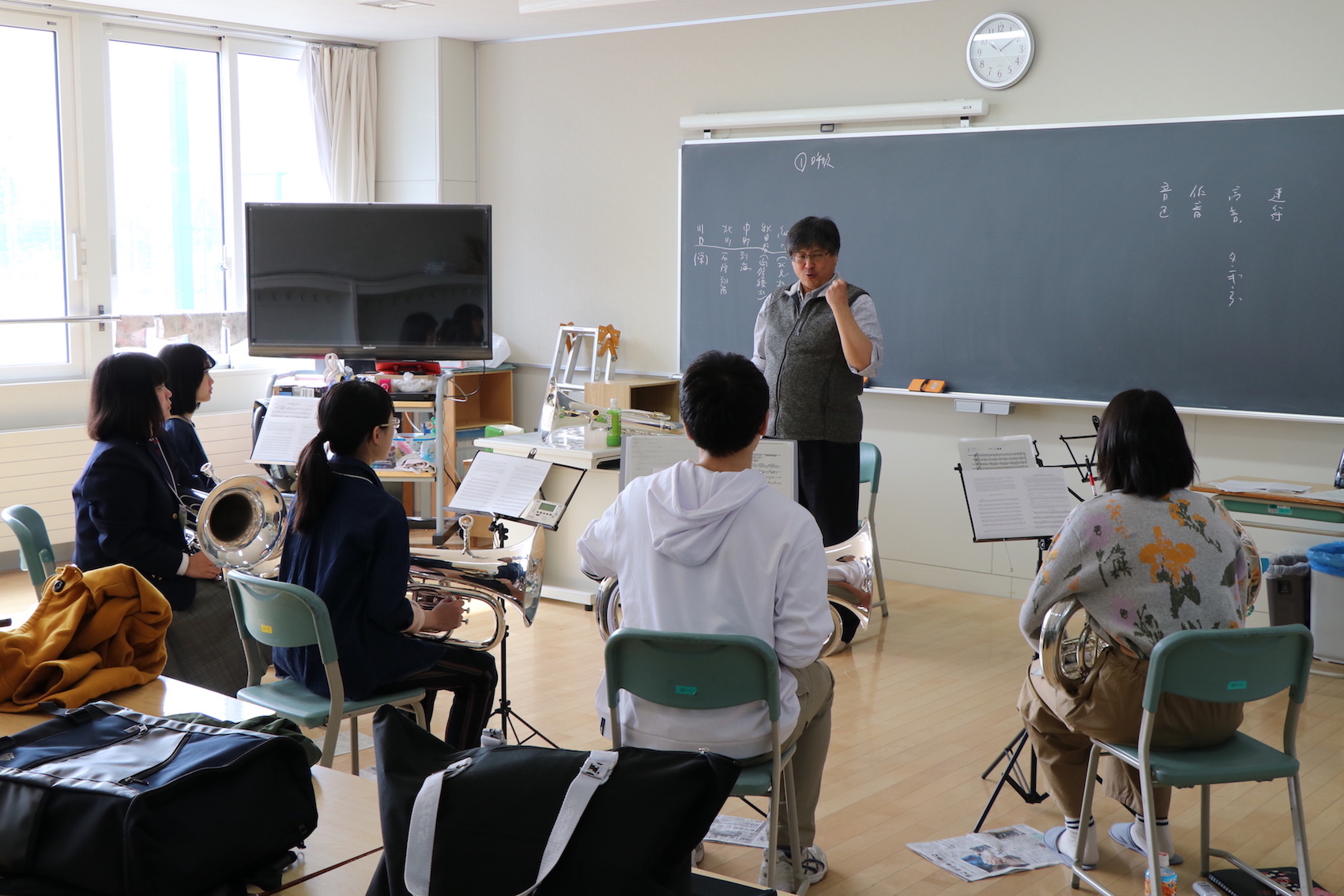 最終日となる3日目は、会場を札幌市立啓明中学校に移し、楽器別の実技講習会を行いました。この講座の講師には札幌交響楽団員をはじめ、東京佼成ウインドオーケストラのフルート奏者の丸田悠太氏、サクソフォーン奏者の中村均一氏、ユーフォニアム奏者の牛渡克之氏、東京フィルハーモニー管弦楽団の打楽器奏者である船迫優子氏などを加え、豪華な講師陣で実施することができました。専門家から指導を受ける機会が少ない受講生にとっては、最終日の疲れも見せず生き生きと受講しておりました。